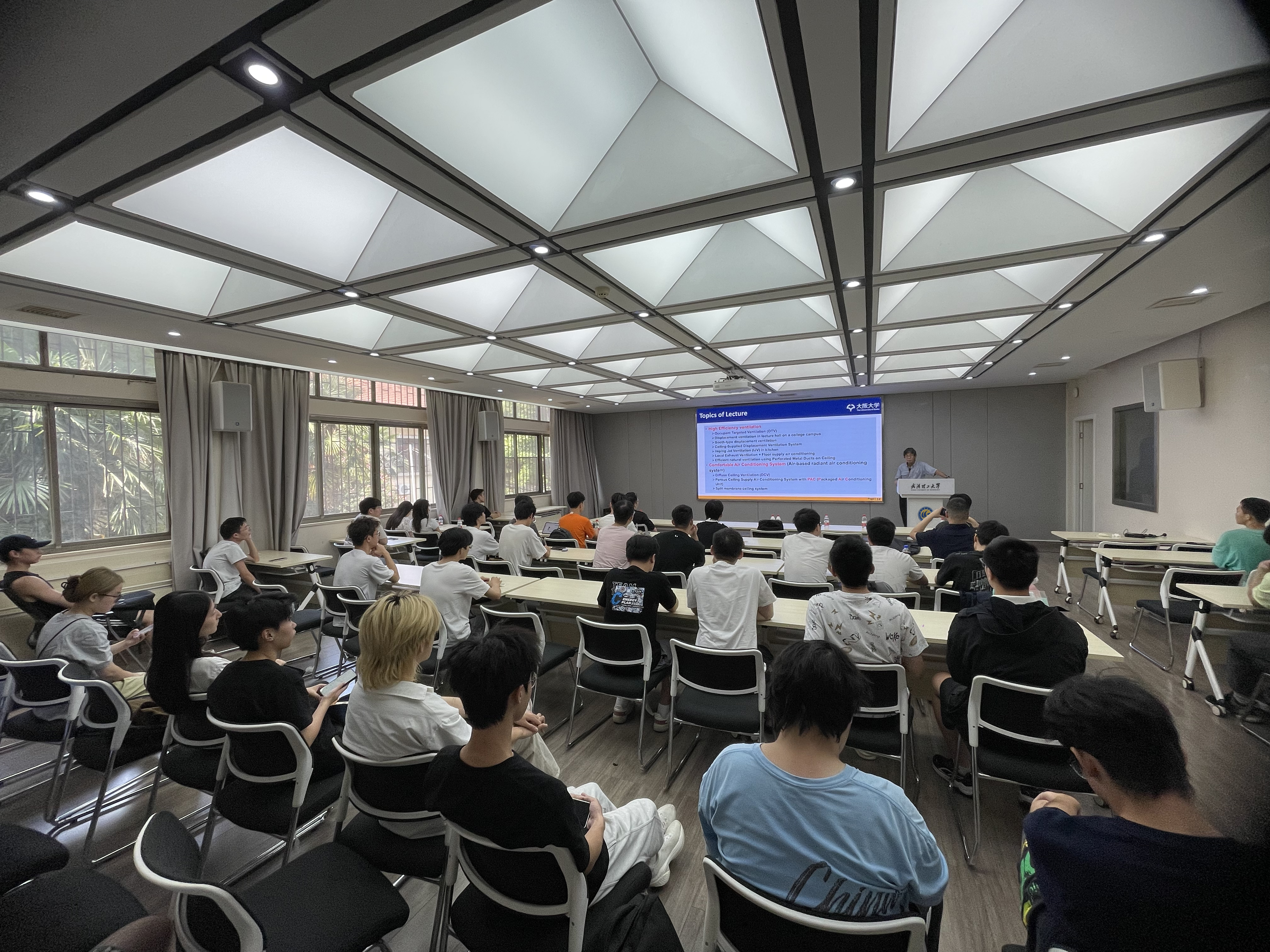 2025年7月13日,日本大阪大学山中俊夫名誉教授、小林知广教授、大阪公立大学袁继辉副教授,应邀做客马房山,在西院图书馆报告厅以《次世代人居环境技术》为题开展学术报告会,并于会后参观了南湖风洞实验中心与大学生创新创业中心。除课题组成员外,本次活动还吸引了土建、汽车、艺设、机电、信息、文法等近 10 个专业的学生,以及建环系、建筑学系教师,共50余人参与交流。