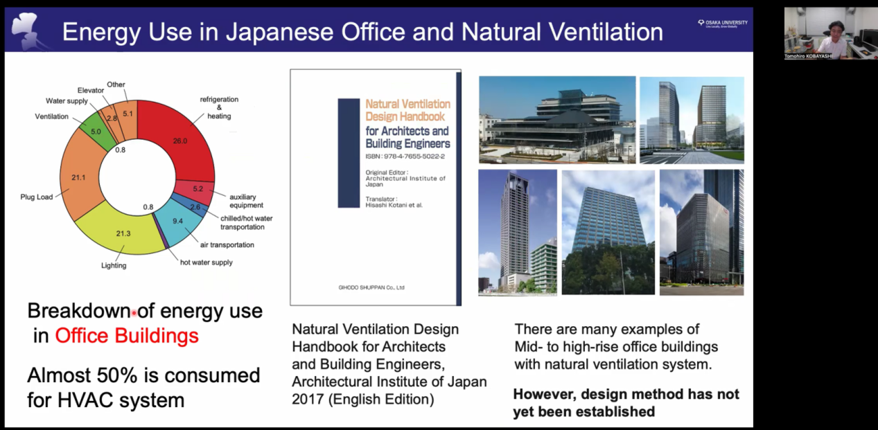 大阪大学风洞实验中心主任,小林教授聚焦 “被动式设计下的多尺度风环境构建” 主题,线上分享了大阪大学在风洞实验与建筑运行能耗领域的最新进展。重点剖析建筑自然通风设计在东亚夏热冬冷地区的节能减碳潜力,并介绍了团队针对技术落地难点在 “系统优化设计”、“人员行为引导” 等方面的研究探索成果。